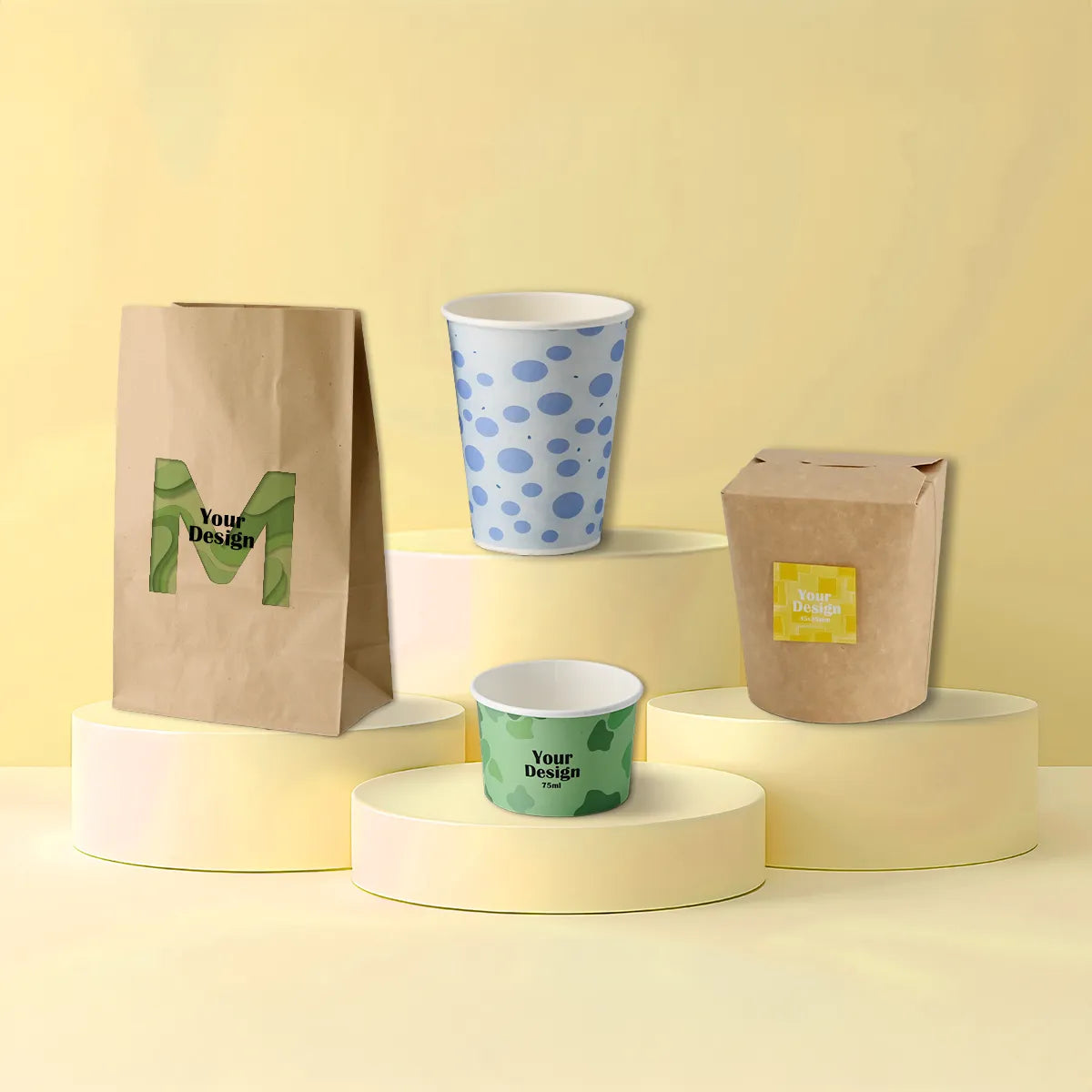 Bei uns kannst du Becher, Tüten und vieles mehr mit deinen eigenen Designideen bedrucken, dir Entwürfe für eine individuelle Gestaltung deiner Verpackungen von unserem Kreativteam erstellen lassen oder gemeinsam mit uns an deinen Designideen und ‑vorschlägen arbeiten.